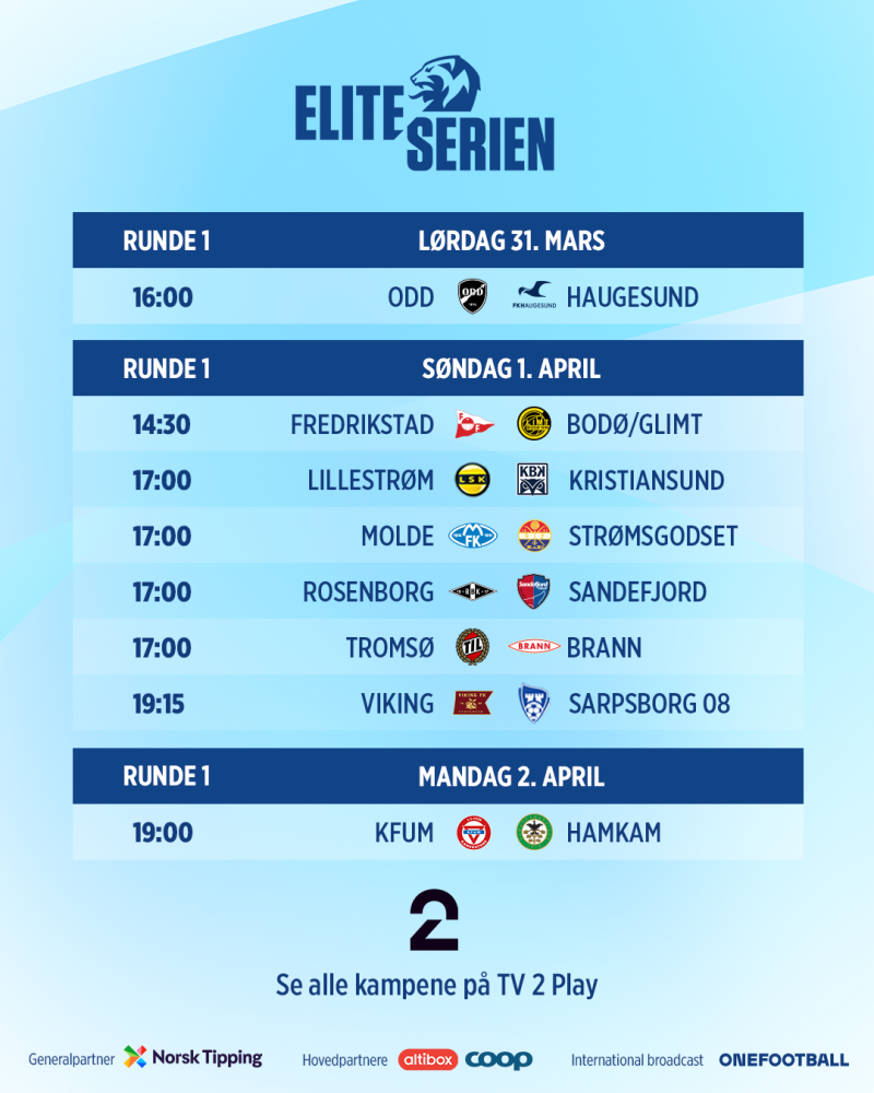 Her er spilleplanen for Eliteserien 2024