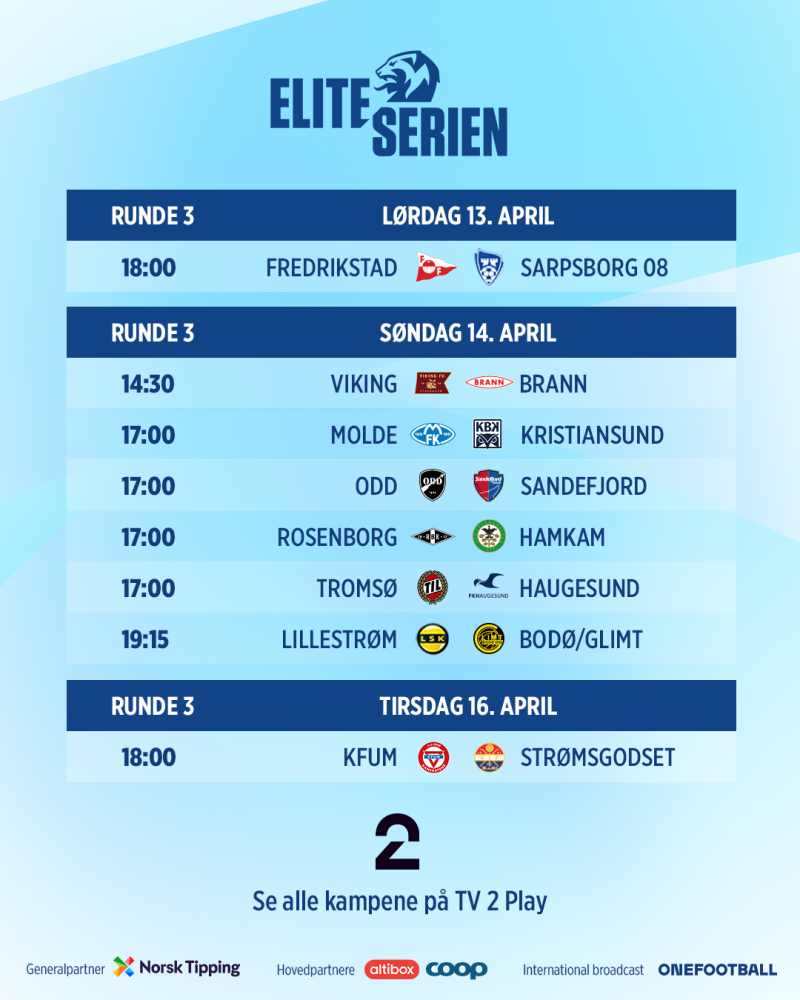 | Tromsø | - | Brann | 01.apr | 17.00 |