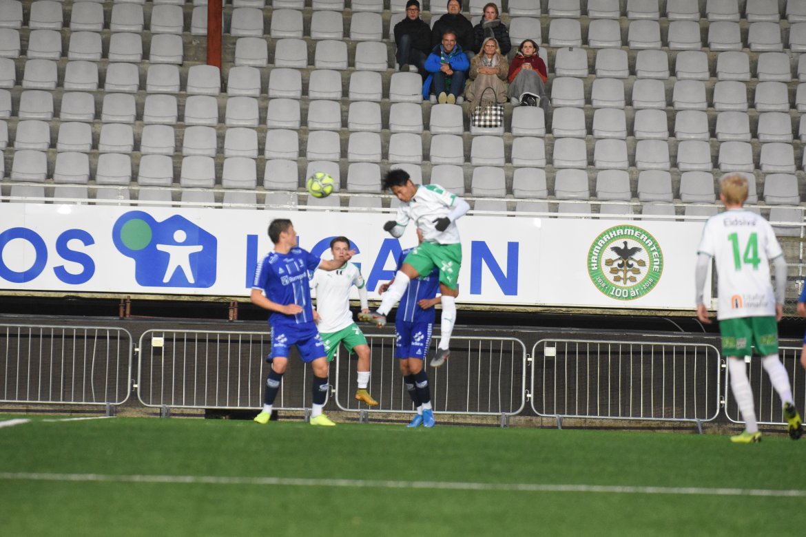 HamKam tok kommandoen fra første spark på ballen og fikk betalt på sin andre sjanse for dagen. Og da var det kun spilt tre minutter. Jarmund Øyen Kvernstuen og Jørgen Holmlund kombinerer flott på høyresiden før sistnevnte kommer alene med keeper. Holdet er skrått, og de fleste venter at brumunddølen skulle spille førtifem grader ut - inkludert keeper. Det betyr at Jørgen kunne sette ballen i korthjørnet, den griper han med begge hender og sørger for ledelse med en frekk avslutning.