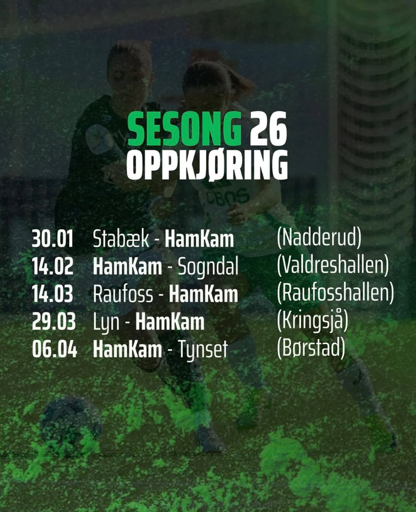 | Lillestrøm | HamKam | 30.01.2026 | 14.00 | LSK-Hallen | 1-0 (0-0) |