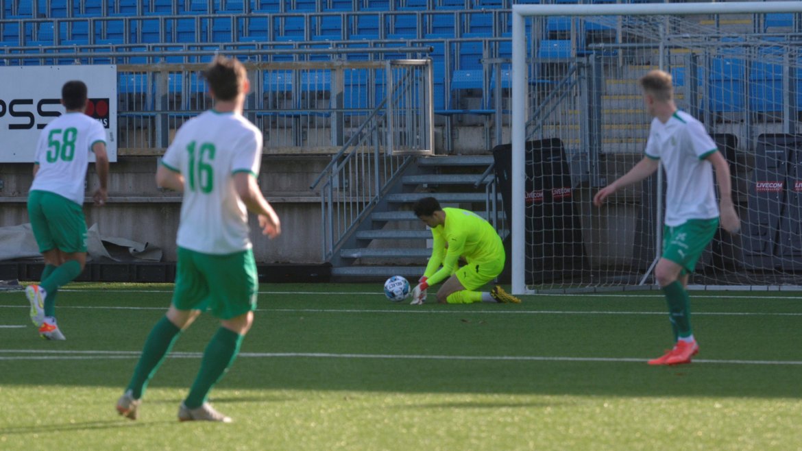 Like før pause for Salvesen omgangens andre mulighet da han fyrer av med venstre fra 8 meter, men skuddet går utenfor nærmeste stolpe.