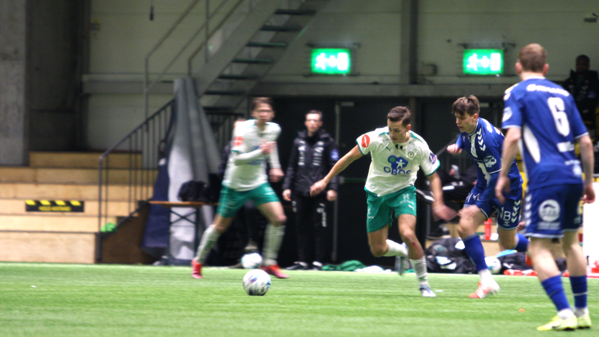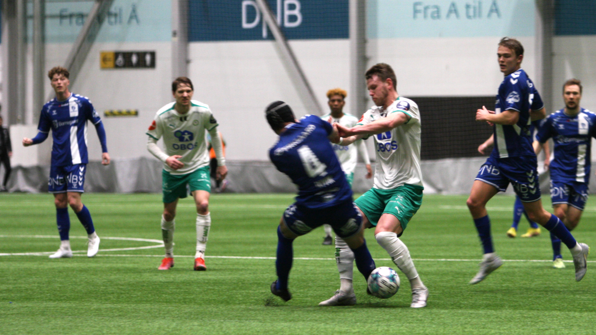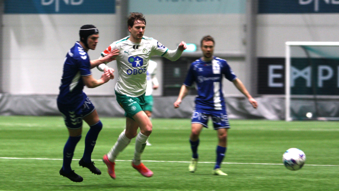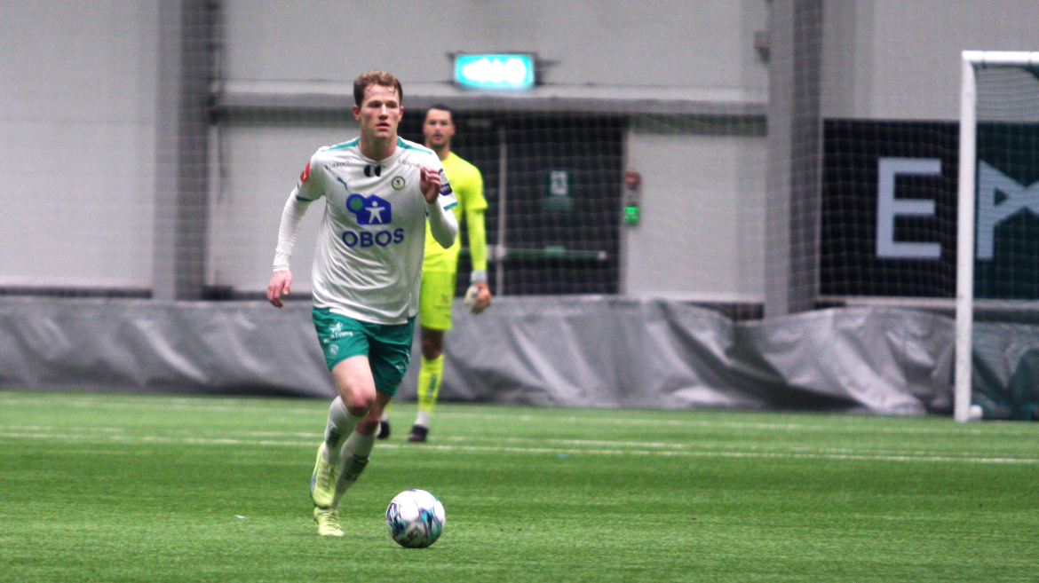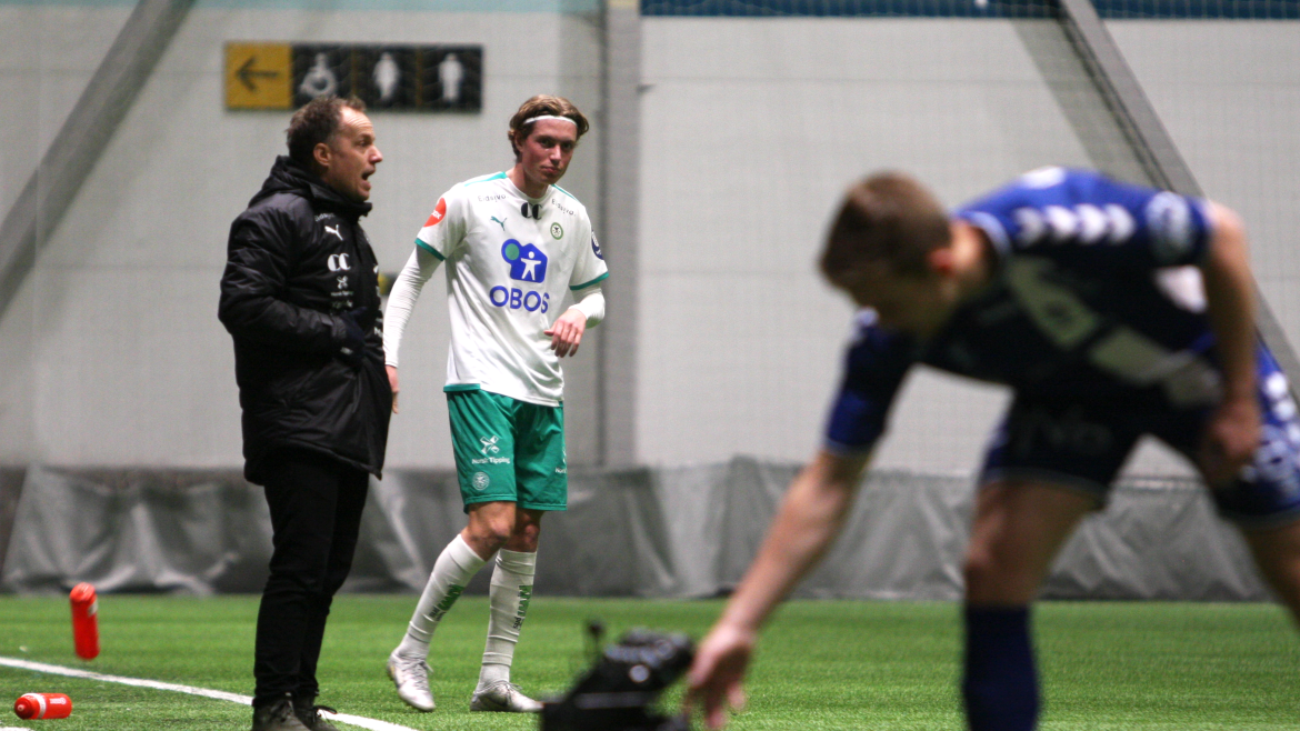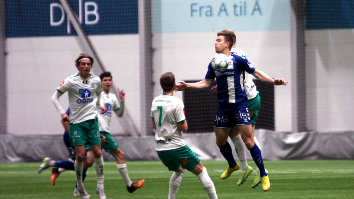 Men etter 40 minutter åpner Kristian Lønstad Onsrud årets målkonto på vakkert vis. Et oppspill vinnes av Henrik Udahl, før Tore Sørås finner Lønstad Onsrud på løp gjennom på lekkert vis. Gjøvik-gutten er iskald alene med keeper og setter ballen i mål under årets første kamp for hans del.