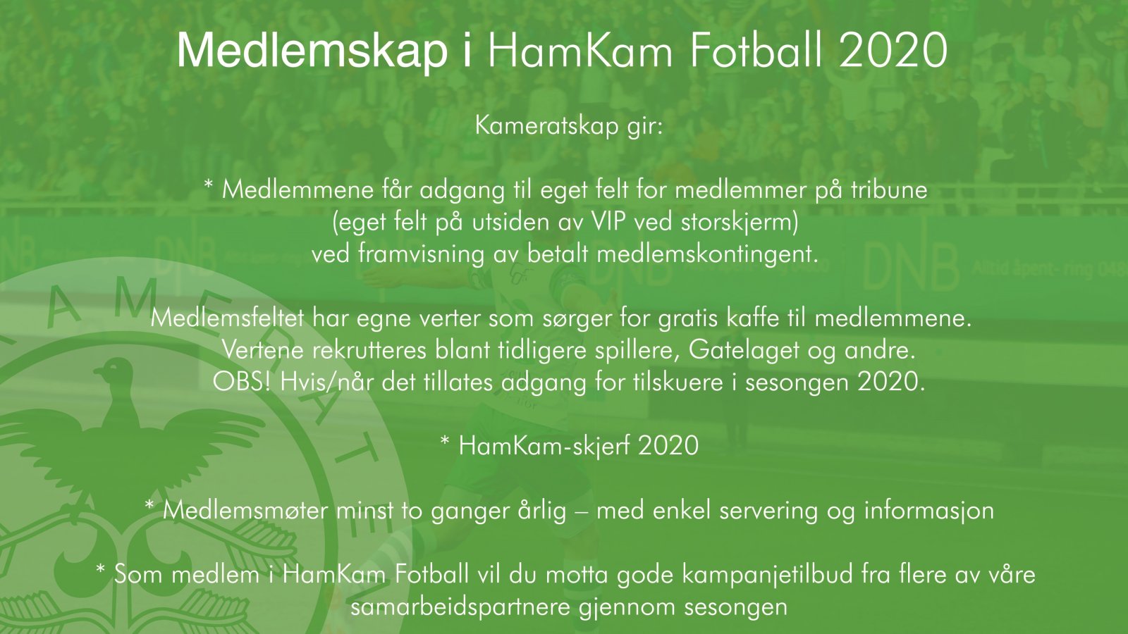 Medlemskap i Ham-Kam Fotball 2020: «Kameratskap» gir: